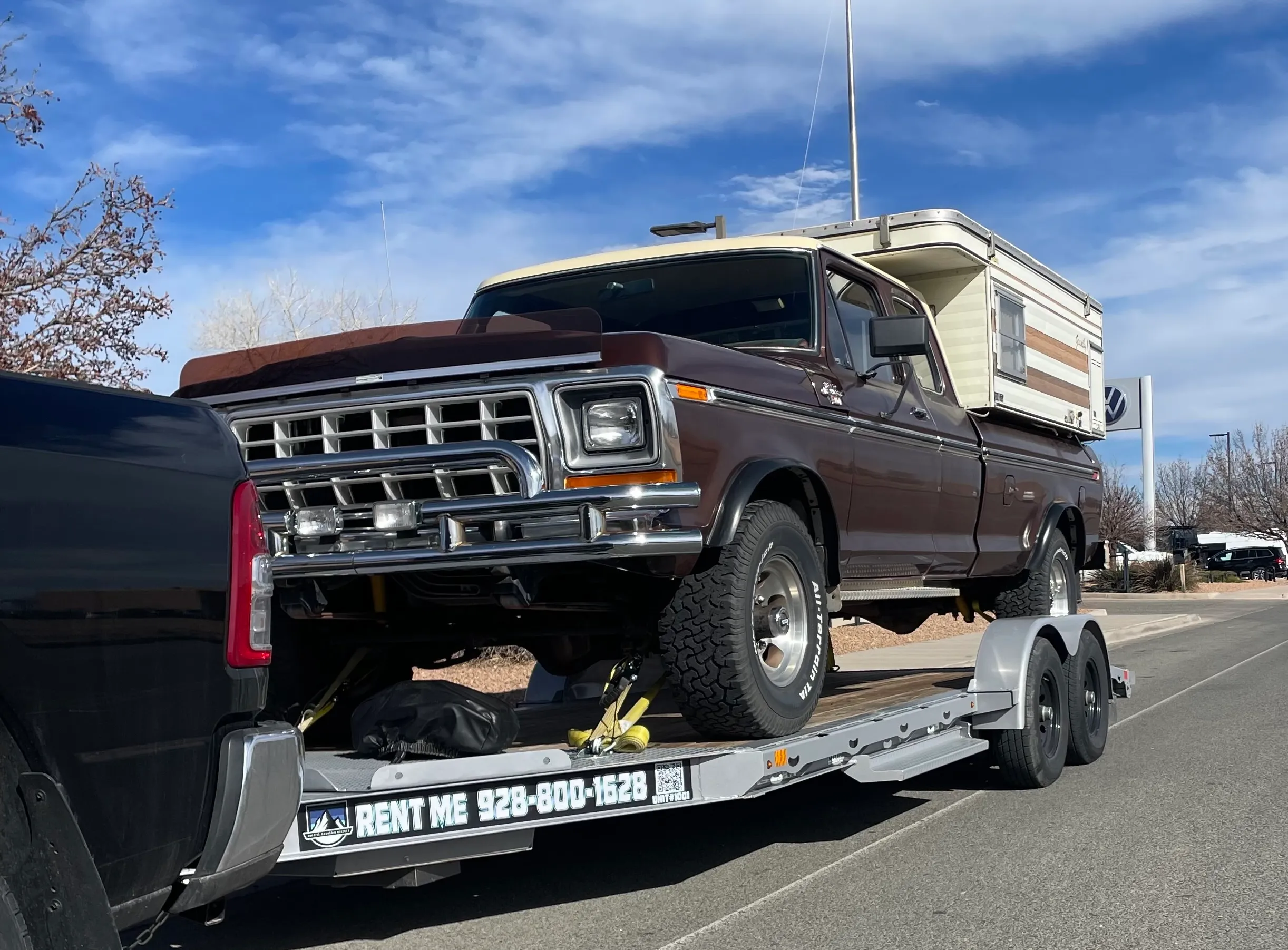 Upon completing your reservation you’ll be given a code to a lock box that is placed on each individual unit. Inside contains the keys that will unlock the installed trailer hitch lock and tool box containing all the rigging to tackle any project. Hook up to your tow vehicle, verify electrical connections (check all light's work), safety chains/emergency brake cable are properly secured and hitch is locked onto the ball. Don’t forget to stow the drop leg completely! Now you’re ready to roll!